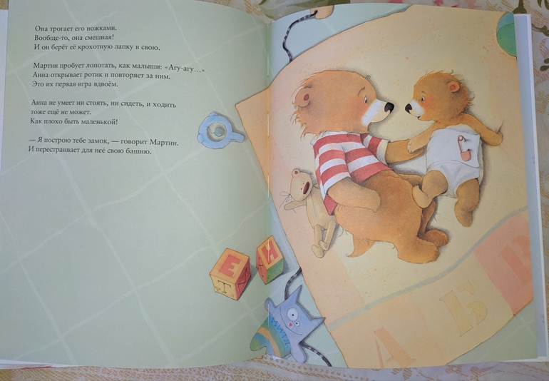На "Ура" зашла книга "У меня будет сестренка" Катрин Леблан, Эва Тарле. Давно мы ее читали со старшей дочерью. Подготовила книгу племяннице, дети " стащили" почитать. Уютное чтение получилось. Много вечеров подряд дети просили рассказать, как они были маленькими: