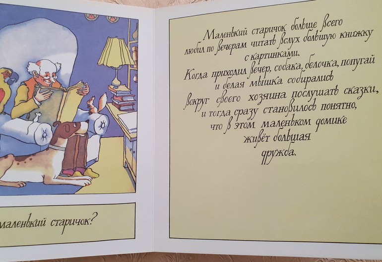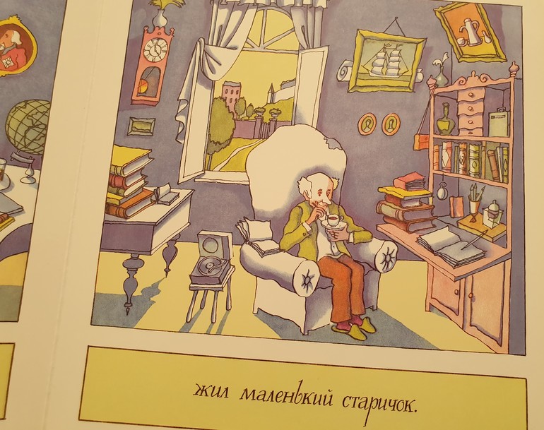 Конкуренцию Альфреду составляет наш милейший старичок от Виктора Пивоварова из книги "Большое и маленькое", который больше всего любил по вечерам читать большую книгу с картинками.