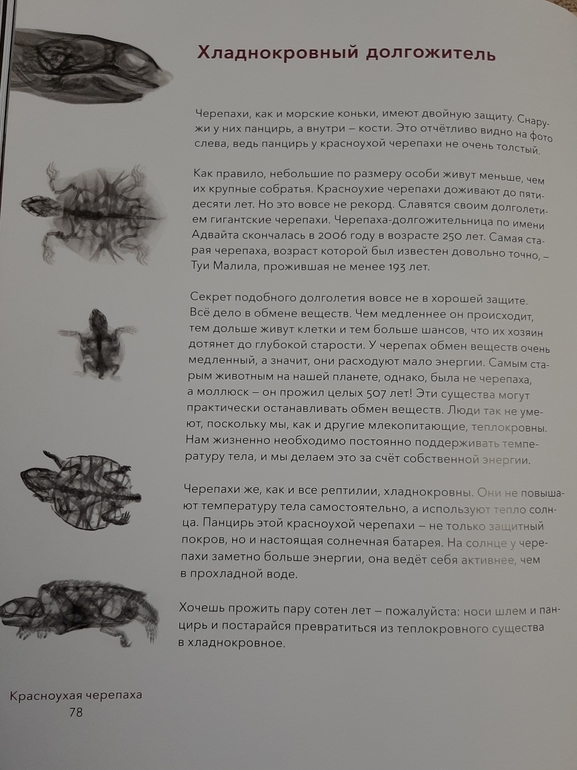 а сын мой давно увлечен темой костей, скелетов , что у животных внутри🤦♀️ Получив книгу, он с ней почти что обнимался, и бегал за сестрой, показывая фото в книге и восхищаясь. Та в свою очередь бегала от него и возмущалась, что не любит такое) так что да, книга, конечно на любителя, но для увлеченного такой темой это просто бесценный подарок!