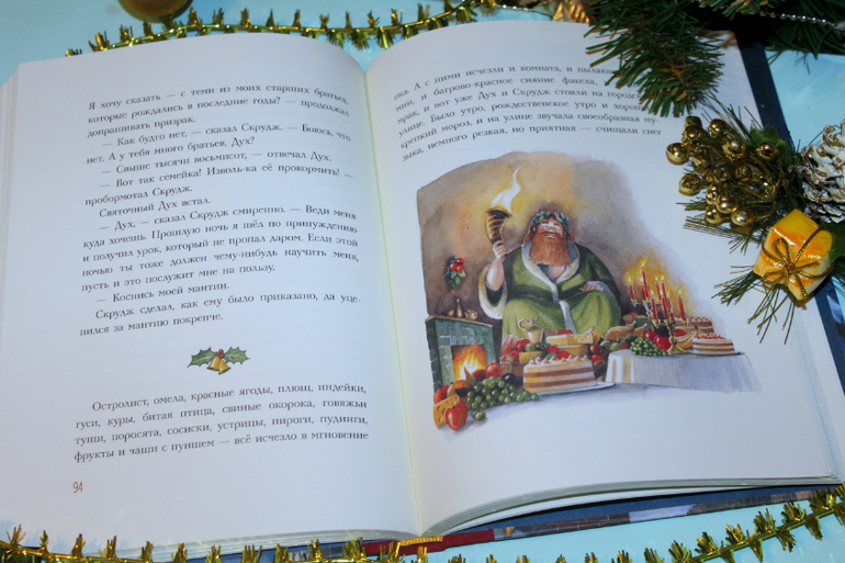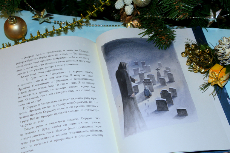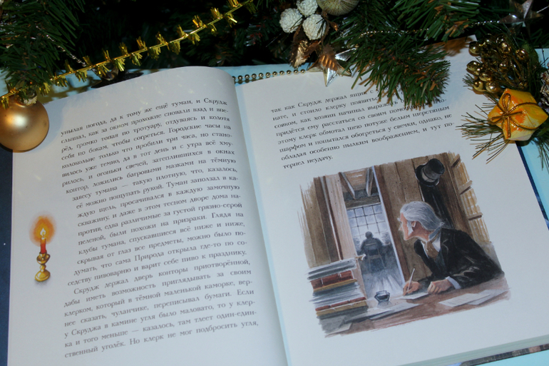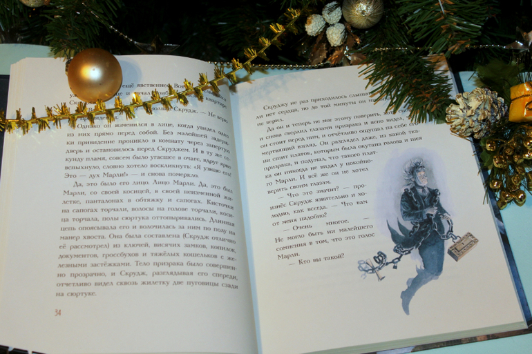 Как бы удивительно это не звучало, но с этим произведением все члены нашей семьи, включая меня, познакомились впервые. Началось это знакомство не совсем гладко, Настёне было скучновато, она просила почитать что-нибудь другое, но сын как всегда был категорически не согласен с сестрой. Решили все же книгу продолжать читать. К концу первой строфы, когда я хотела отложить книгу до следующего вечера, протестовали уже оба ребёнка.))) Меня долго уговаривать не пришлось, прочитала я и вторую строфу, про то, как у Скруджа прошла встреча с первым духом.