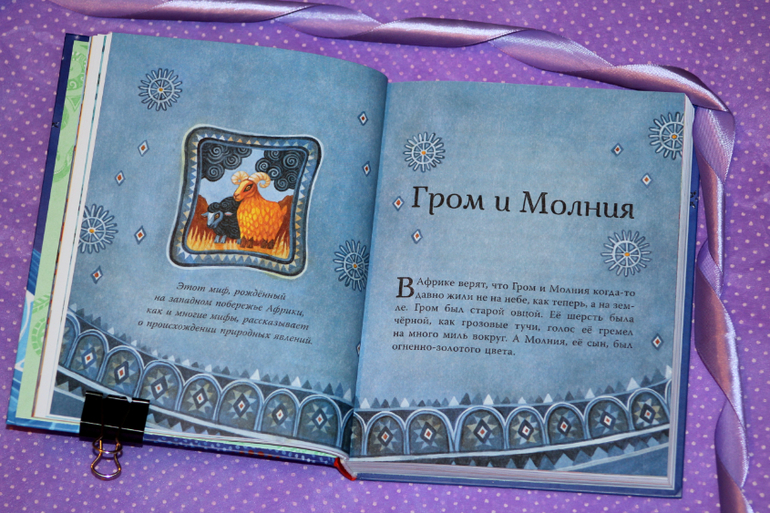 Этот томик содержит в себе семнадцать мифов и сказок, которым много-много сотен лет. Мы прочитали мифы Древнего Египта, Кореи, Африки, Аляски, Индии... Все сказки собраны из разных уголков мира, обработаны, пересказаны и переведены настолько грамотно, что читать их будет легко и интересно даже первокласснику. Вот и я не могла оторваться. Всю книгу прочли за два вечера.