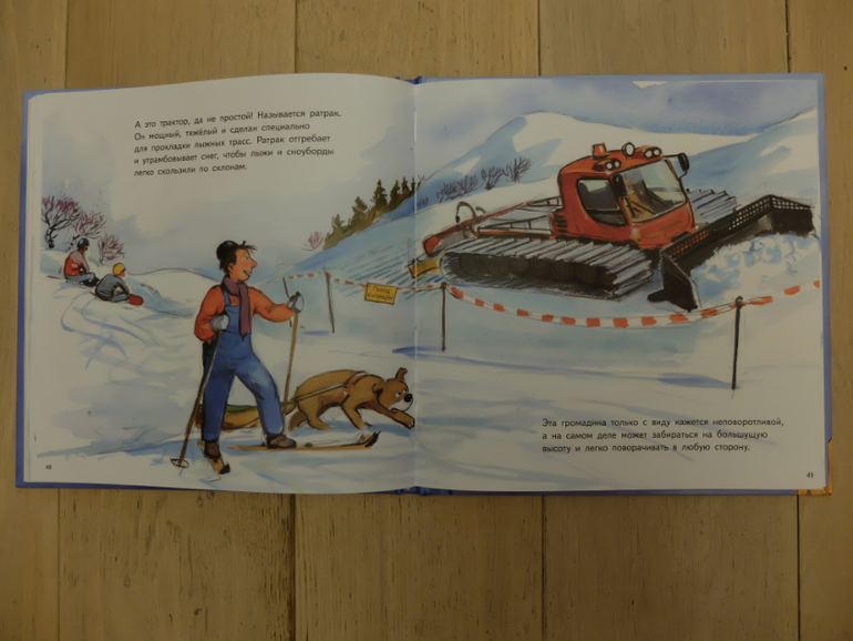 Книжка рассчитана действительно на маленьких читателей. Я бы начала ее читать около 2 лет, особенно мальчикам, которые увлекаются всякой техникой. Но у меня девочка-девочка, которую машины вообще не интересуют, поэтому для нас книжка оказалась полезной даже в почти 4 года. Да что и говорить, я сама в первый раз узнала, что такое ратрак, ибо я совсем не "горный козел" и даже на обычных лыжах стояла один раз в жизни. Больше не рвусь:)))))