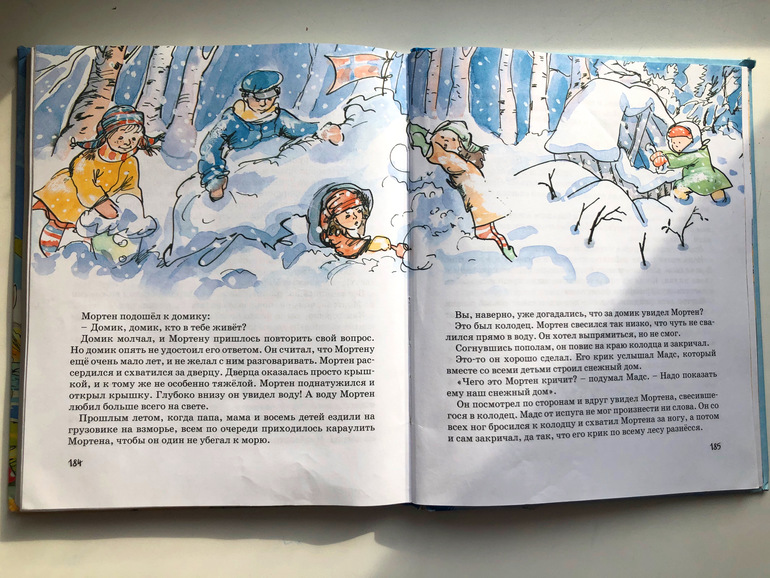 Анне - Катрине Вестли «Папа, Мама, Бабушка, восемь детей и грузовик». Автора этой Книги называют не иначе, как «Почетная Бабушка всей Норвегии». Книга написана абсолютно простым и понятным языком, пойдёт для самостоятельного чтения детям в начальной школе. Поначалу показалась мне простенькой и слишком уж незамысловатой, но потом мое мнение поменялось. Наверное, нам сейчас не хватает таких книг, где у людей во главе семейные ценности, уважение и любовь. В ней описана жизнь многодетной семьи, как все несмотря на неудобства, нехватку денег и возможностей сохраняют дружеские отношения друг с другом и чувствуют себя самыми счастливыми. Моя дочь сказала, что книга очень поучительная для детей в том, чтобы быть самостоятельными в быту и более ответственными. Рекомендую лет с 5 читать детям.