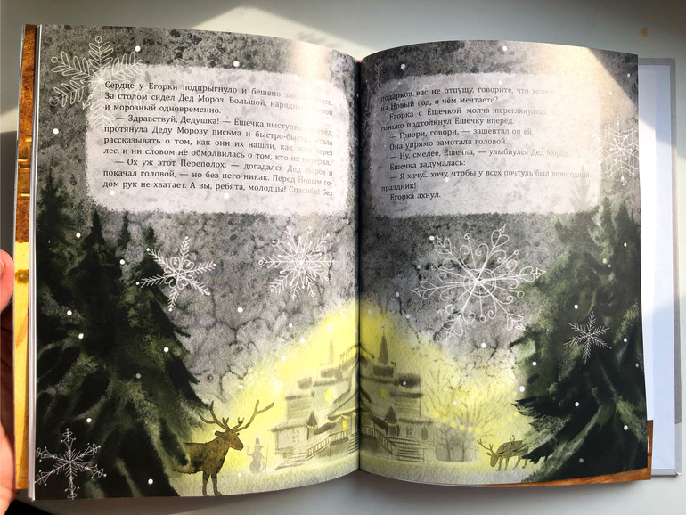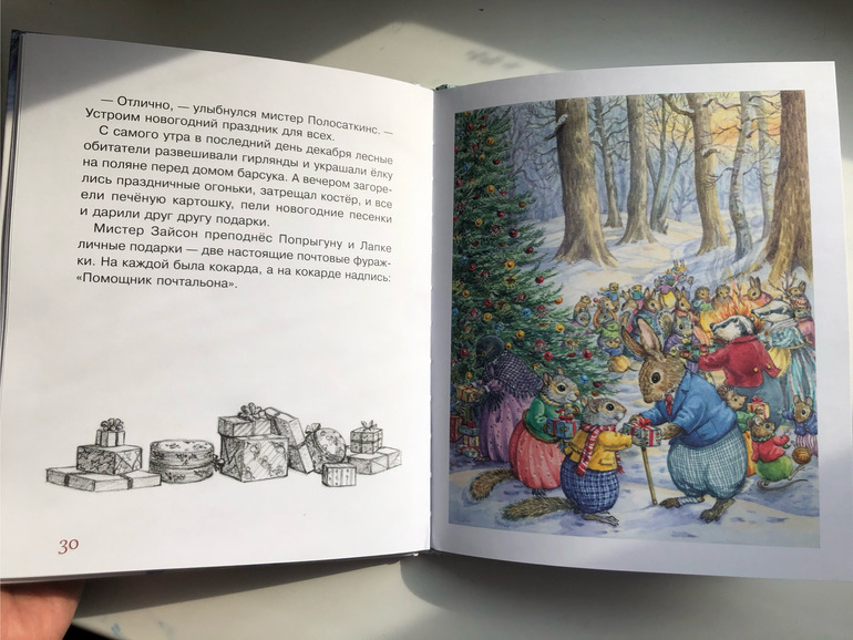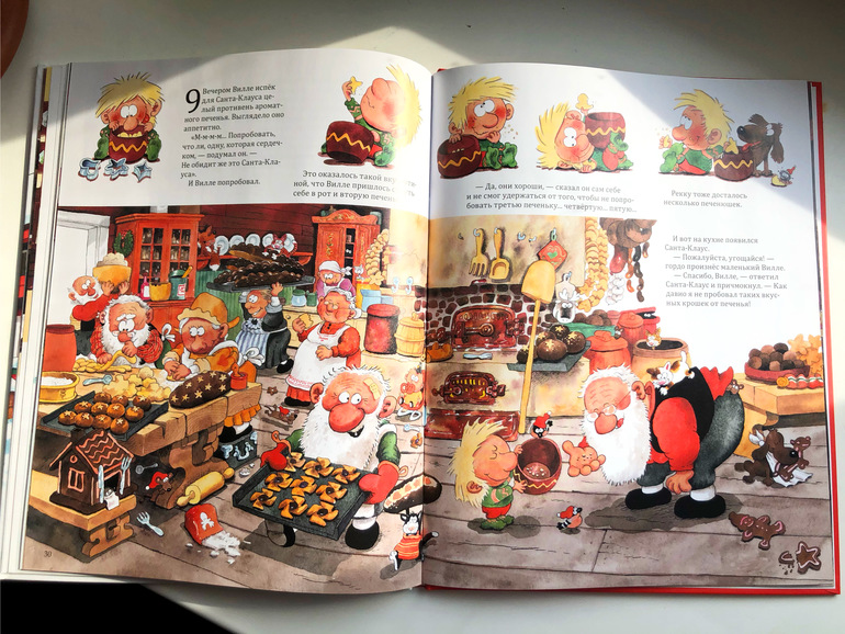 «Двенадцать подарков для Санта-Клауса». Тот случай когда на сюжет можно даже не смотреть, потому что каждая иллюстрация просто бомба💣 Хотя и история достаточно милая и смешная. Иллюстрации можно использовать по разному, можно играть с ребёнком на внимательность, в найди-покажи и другие. Да и просто она создаёт очень новогоднее настроение👍