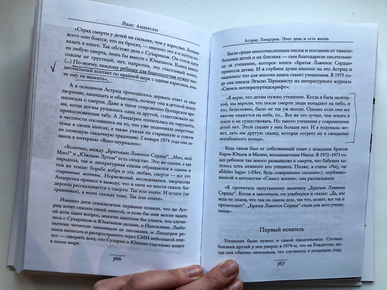 ЙенсАндерсен «Астрид Лингрен. Этот день и есть жизнь.» Биография Астрид Лингрен. Что могу сказать: замечательно написана, правда, много сложнопроизносимых названий и имён, но это не главное. А главное о том, что за человек была Астрид Лингрен, поистине внесшая огромный вклад в детскую литературу 20 столетия. Необычно было узнать, что Пеппи длинный чулок- это протест Великой Отечественной войне. И о многих других ее произведениях. Она мне очень близка по моему отношению к детям и детству, к воспитанию детей, к их играм и общению с ними. Каждая ее реплика очень отзывалась во мне и находила приют. Если бы меня кто то спрашивал совет что лучше прочитать: очередную книжку по воспитанию детей или биографию Астрид Линдгрен, я непременно советовала бы второе🙌 От души🤗