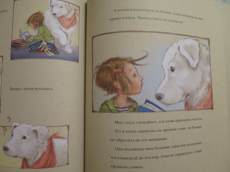 Благодаря внимательной слушательнице - собаке девочка научилась читать.