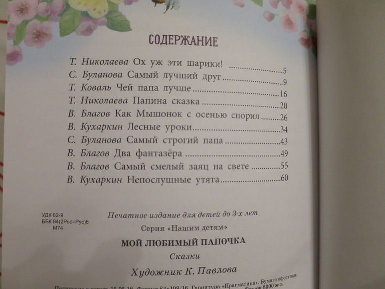 Шрифт подходящий, хотя текста на странице много. Очень красивые иллюстрации К. Павловой. Истории про зверюшек и их пап.