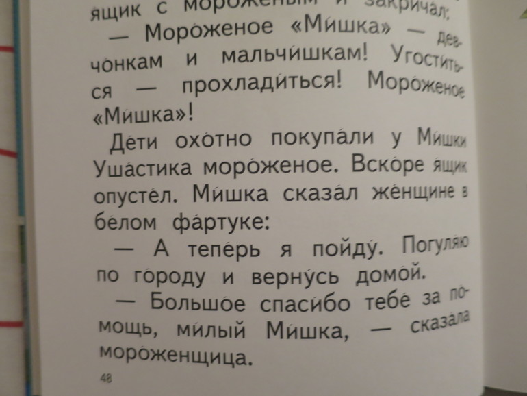На истории о мороженом маме вздумалось проверить технику чтения у ребёнка. Итак, со слова "угоститься" и до конца текста: 32 слова в минуту, т.е. норма первого класса в первом полугодии.
