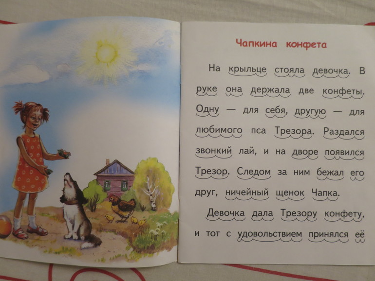 Очень подходящая книга для начального чтения: крупный шрифт на белом фоне, мало текста, красивые иллюстрации.