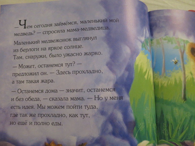 Добрая история про медвежонка и его маму. Прекрасные иллюстрации, крупный шрифт, не много текста на странице.