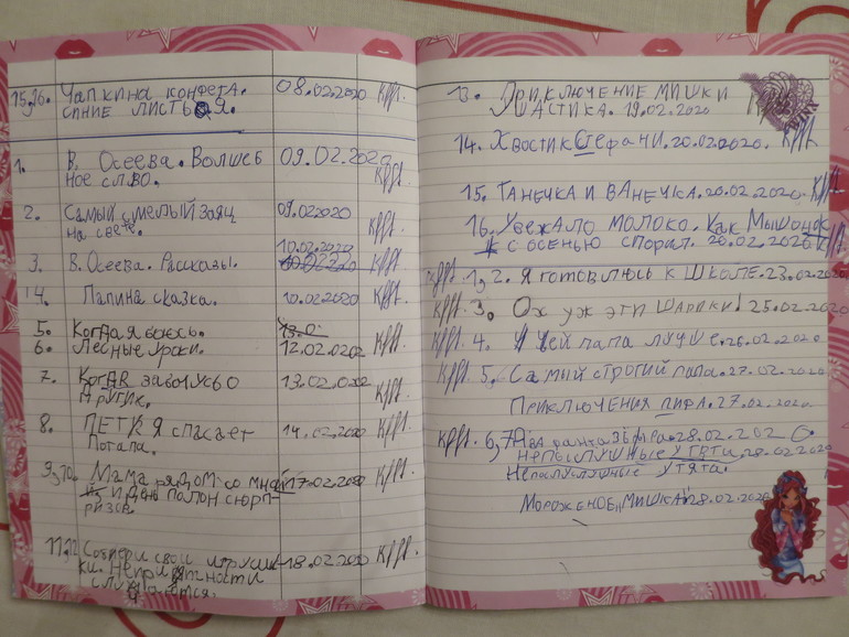 Дочь захотела внести в читательский дневник, она же читала сестрёнке: