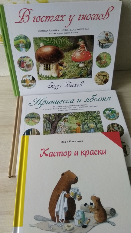 В гостях у гномов и Принцесса и яблоня, на мой взгляд, лучшие книги у Бесков. Есть сказки в стихах, просто сказки и небольшие стихи. Грамотно составленные сборники, которые понравятся и мальчикам и девочкам. Их мы и читали больше всего.