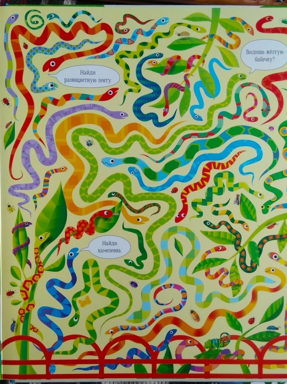 Спонтанно купила серию - загадки-головоломки! Нам пришлись по душе, там надо именно искать, заданий мало, но очень легко придумать свои. Причем это мне и нравится - Темка очень быстро сообразил, что надо делать и сидит у меня спрашивает - Мама, а найди мне змею, которая охотится за букашкой. Жетой букашкой! или Мама, а найди мне змею, которая свернулась в клубочек. Я была от него в восторге и шоке )))
