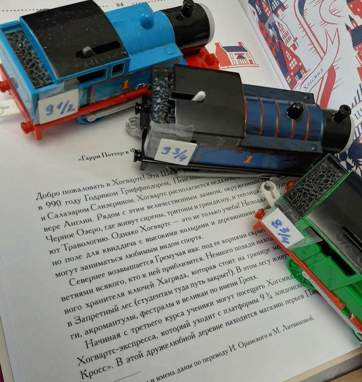 Я сама не читала Поттера, поэтому воспользовалась путеводителем для создания каверзных вопросов по тексту)) За каждый правильный ответ вручали часть пазла, на котором было отмечано секретное место