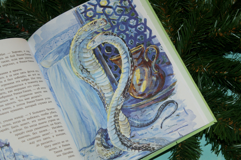 Со школьных лет не перечитывала "Рики-Тикки-Тави", только мультик смотрела. А тут такая красивая книга, что я не стала оставлять ее дочке для самостоятельного чтения, решила сама ей прочесть. Хоть мультик и хорош, но с книгой ему всё равно не сравниться, на мой взгляд.