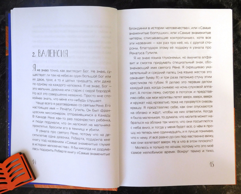 Интересно, как автор строит повествование. Эту историю рассказывают разные герои. Сначала мы видим ситуацию с позиции Верджила, потом со стороны Каори, Валенсии, Чета Быковски. Мы словно побываем в голове у каждого персонажа, узнаем его мысли, переживания, желания, понаблюдаем за его обычной жизнью. Так, например, девочка Валенсия, в которую влюблён Вёрджел, - глухонемая. И её история позволит нам познакомиться с каждодневными проблемами глухонемых.