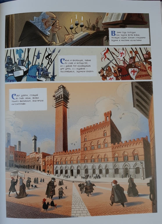 Вернее, конечно, не города, а их не менее славные правители. А вот в ту пору, когда герцог Фьерамоску отправлен сражаться во имя города Сиена, его дочь тайно отправляется в путешествие со своим старшим другом Козимо.