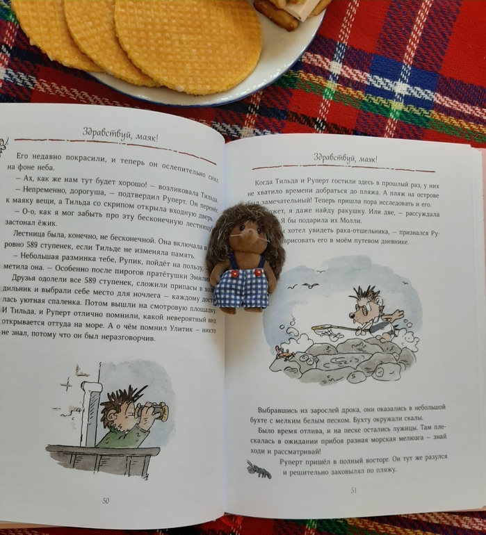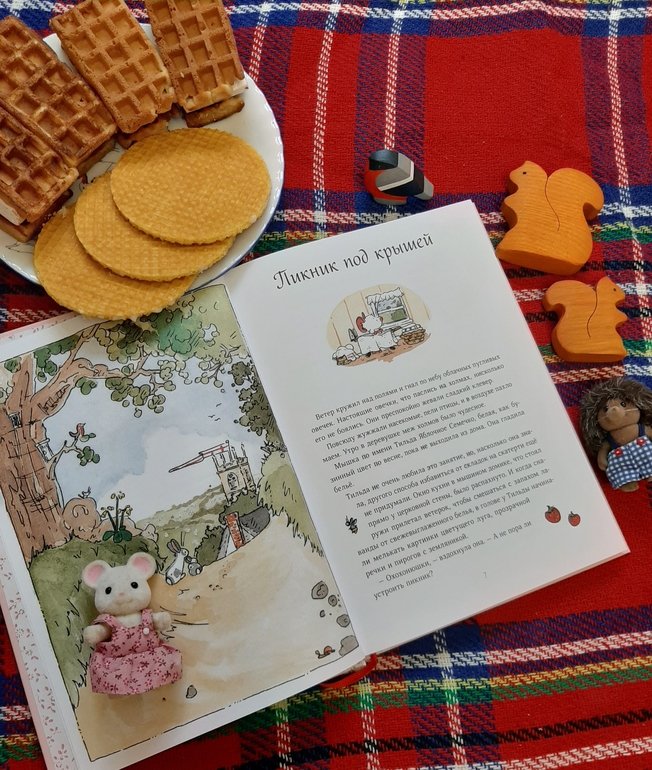 Ведь главное, не место, а компания и правильное настроение) а уж компания подобралась чудесная! Дружные, внимательные к друг другу, заботливые жители вместе готовы пускаться на любые авантюры и приключения! Вообще книги про Тильду и ее друзей поражают меня удивительным сочетанием уютного, душевного мира и увлекательных происшествий! Ведь там все время что то интересное происходит! То друзья находят тайный ход , то отправляются в путешествие на маяк, или даже на ночевку в лес.