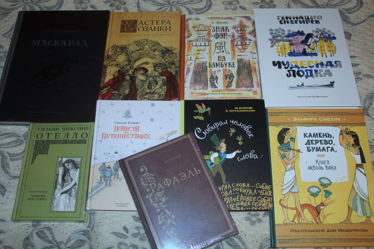 Рафаэля и Леонардо купила, а "Впереди веков. Микеланджело" мне не досталось. Может у кого задублировалась? Куплю с удовольствием! "Собирал человек слова" наконец-то куплена! "Оттело" удивил небольшим размером. Представляла большой формат. "Маскарад" есть от "Речи", но от ИДМ все равно взяла, интересно было просто книгу посмотреть.)) "Знак "фен" на бамбуке" второй раз купила по невнимательности.))