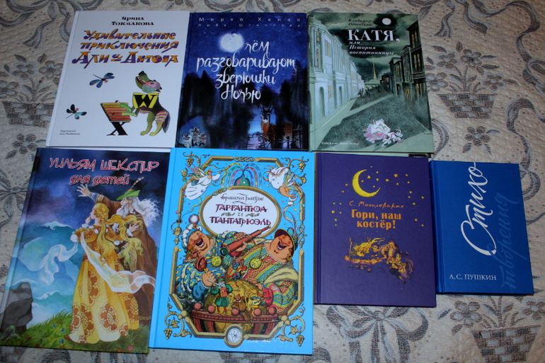"Стихотворения" на подарок взяла. У нас есть этот чудесный томик. Сын по нему в этом году стихи учил.) "О чём разговаривают зверюшки ночью" давняя хотелка. Это Марина соблазнительница постаралась.)))