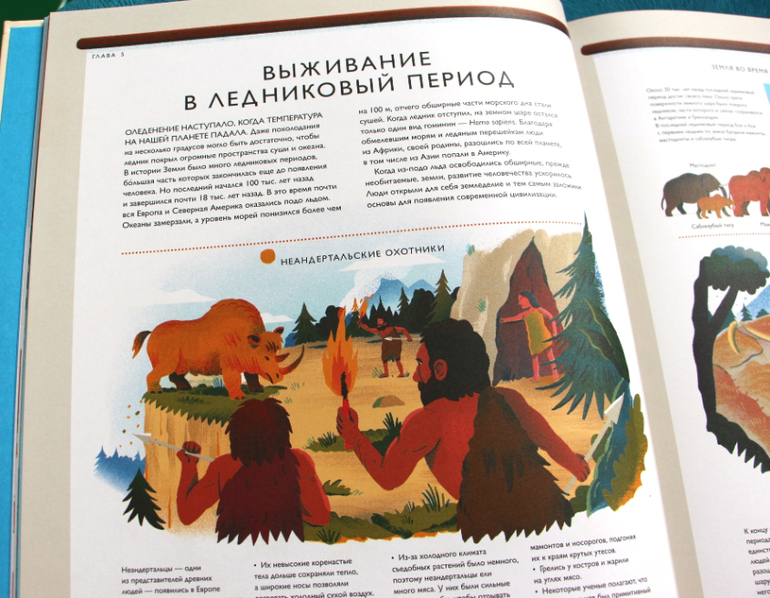 Например, схема с нашими предками и другими ответвлениями человекообразных - гомининами - очень информативна и понятна. И я так понимаю, все это и сейчас изучается учеными и постоянно пересматриваются выводы. То есть в книге материал, скорее всего, новее, чем в учебниках и есть все шансы выбесить учителя, сказав что-то свежее учебника.