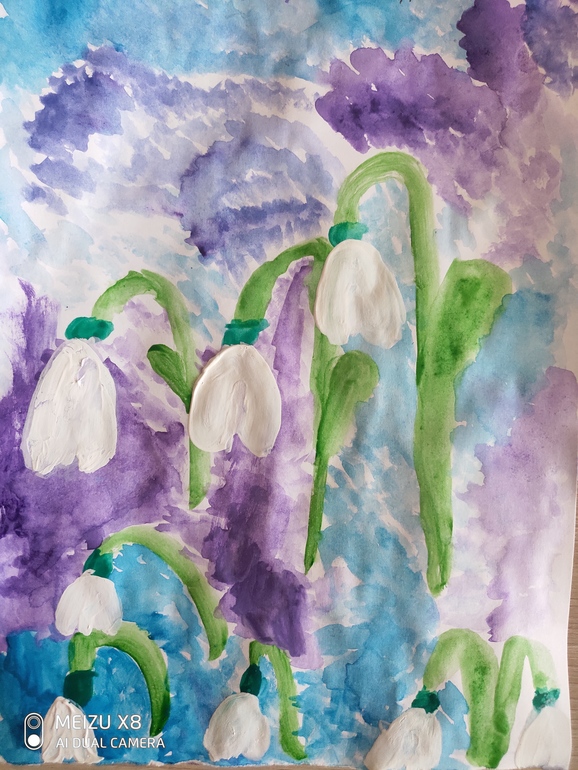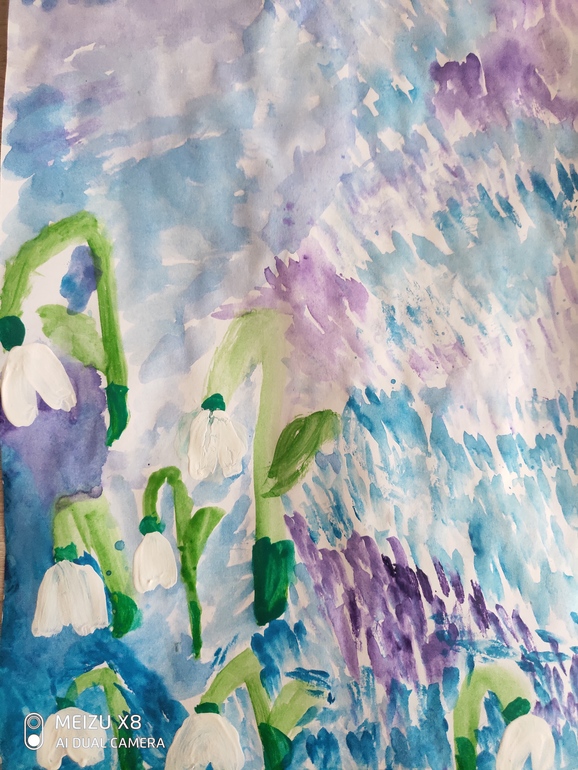Рисунки и аппликации дочки и сына на тему "Весна", выполняли самостоятельно.