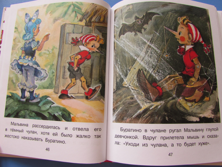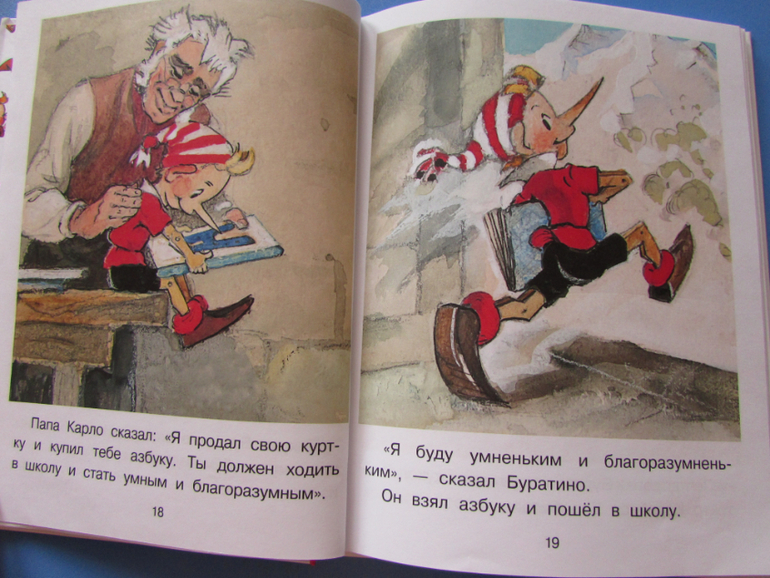 Сын прочитал историю про озорного и непослушного деревянного человечка быстро. В течение одного дня. С перерывами.