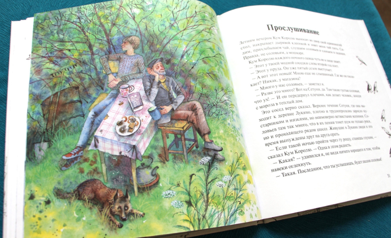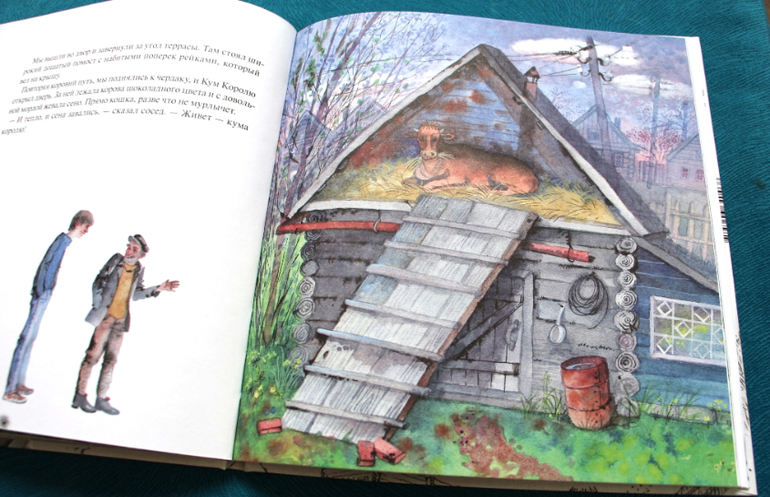 Кум Королю это сосед, который счастливо живет в своей лачужке с крохотным двориком. Даже автор удивляется такому всеобъемлющему и постоянному счастью. Да только оказывается, что книга не о нем. Книга о мельчайших деталях прекрасного мира вокруг, прекраснейшего мира вокруг, которые нам надо просто заметить и неплохо бы научить этому детей.