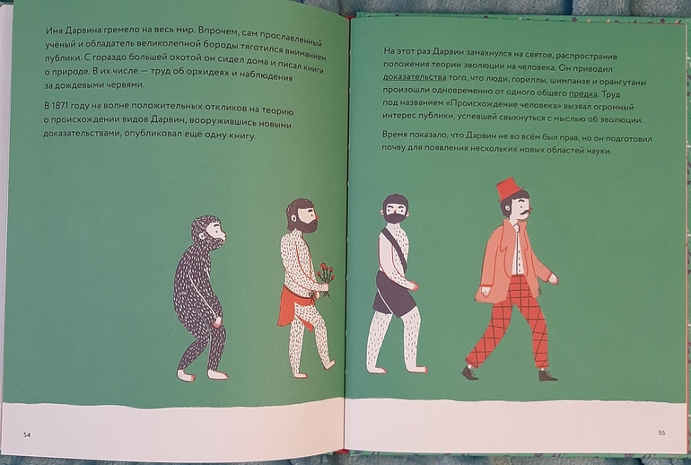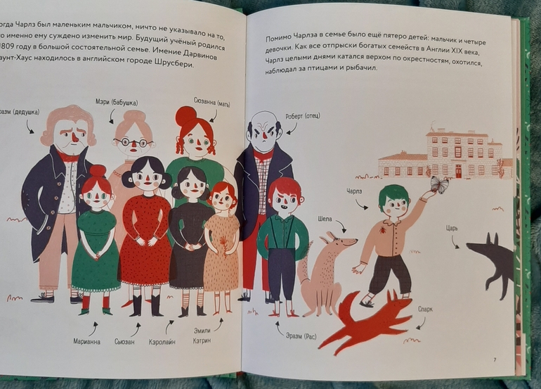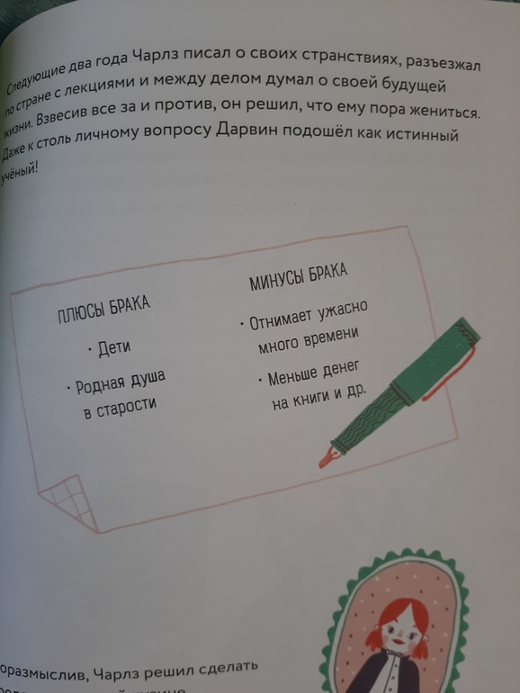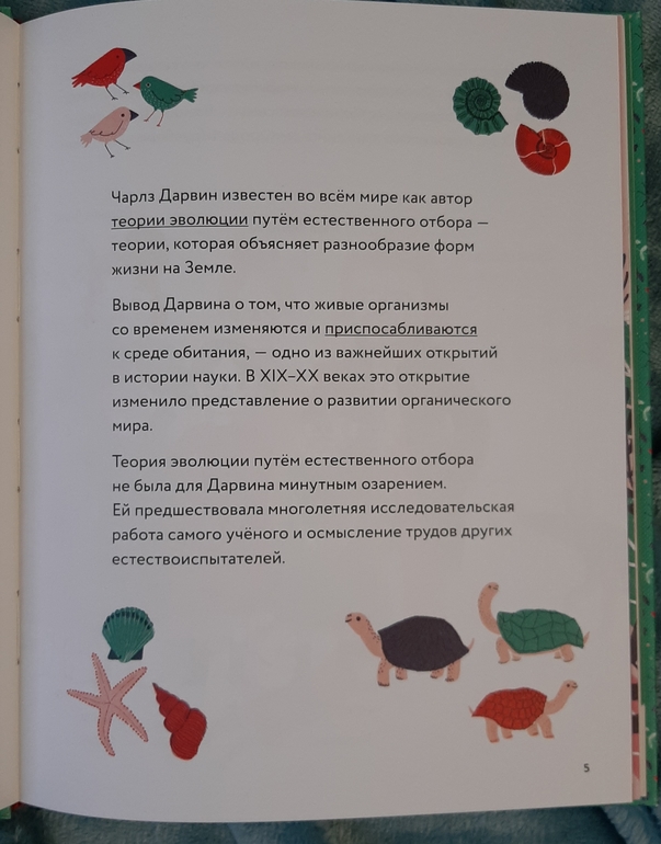 Книжка - картинка с немного мультяшными героями кратко рассказывает о жизни создателя теории эволюции и позволяет с легкостью освоить некий пласт школьного курса по биологии)