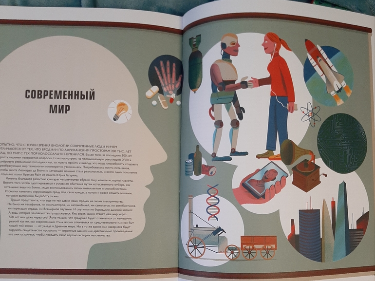 Книга Как человек стал человеком действительно представляет собой иллюстрированный сборник удивительных фактов. В книге рассказывается об эволюции человека и представлено два периода Древний мир и Средние века. Сына моего периодически занимают такие вопросы, откуда вообще появился человек, так что даже не смотря на то, что книга рассчитана на более взрослый возраст, мы и сейчас находим интересующие нас темы.