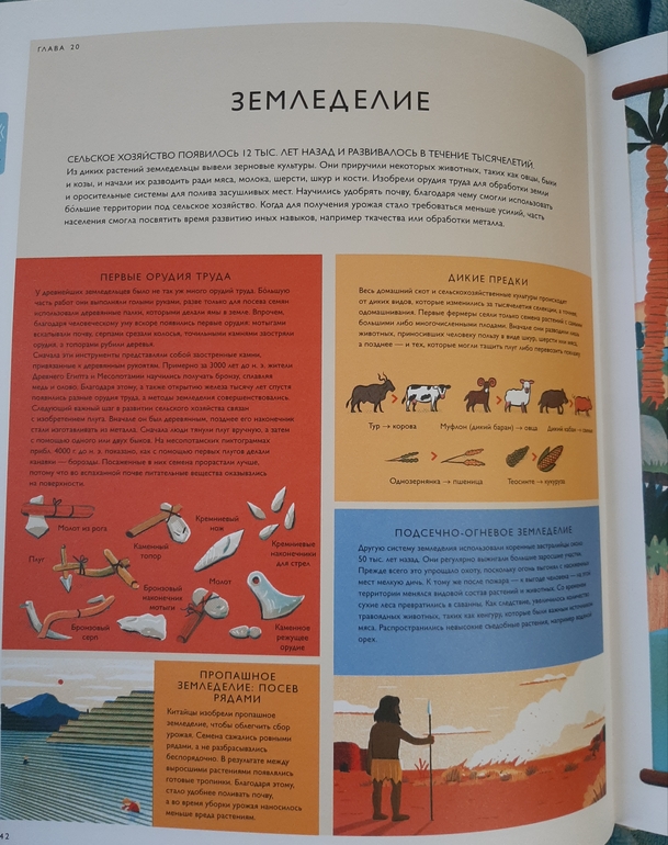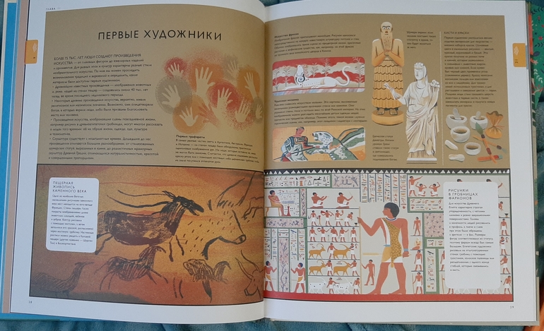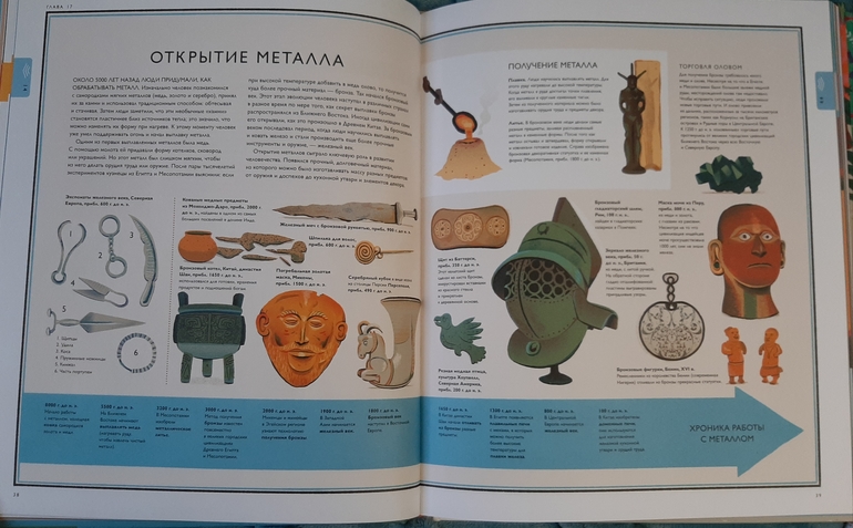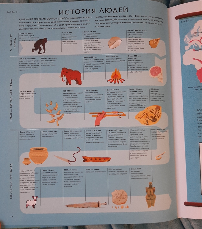 Вообще у сына сейчас необычная картинка развития мира: динозавры, древние люди, французы( те, которые с Наполеоном) и мы современные люди 🙈 надо продолжать расширять кругозор) и эта книга, думаю, станет отличным подспорьем. В ней освещаются почти все аспекты жизни, деятельности и увлечений людей в определенный временной период.