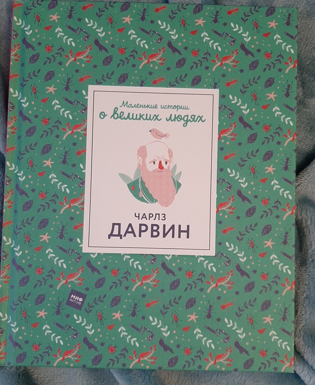 Небольшого размера книжка Чарлз Дарвин в серии Маленькие истории о великих людях с очень необычной атмосферной обложкой