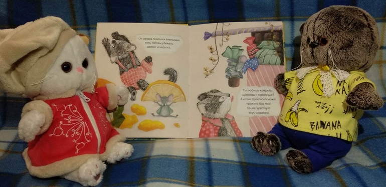 Из книги мы узнаем, что коты не любят запаха цитрусовых и не чувствуют вкуса сладкого.