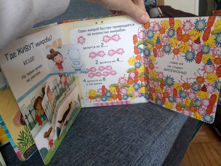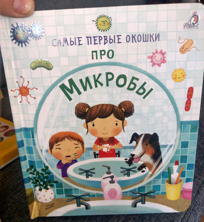 Книжки с окошками по-прежнему актуальны. Самая любимая сейчас про микробиков😁 издательство Робинс.