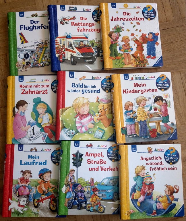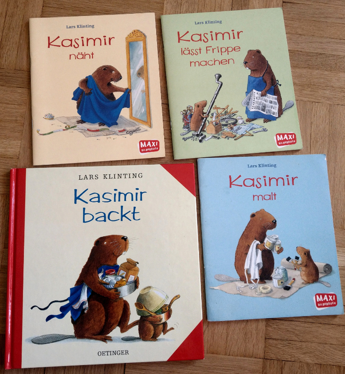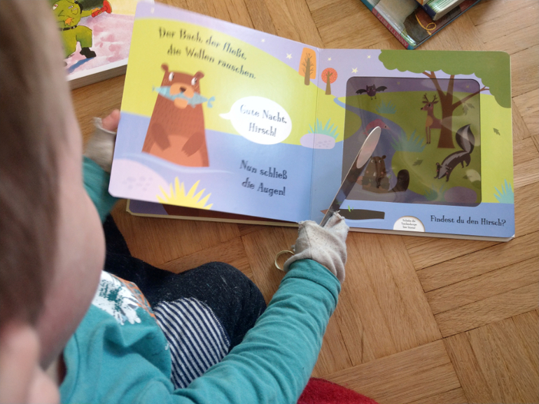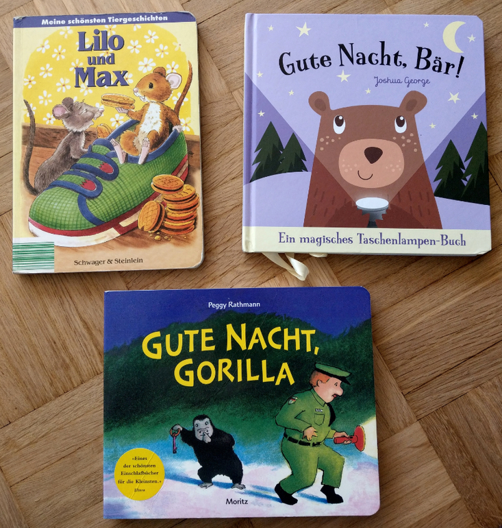 Если Тим укладывается с папой, то они читают/смотрят немецкие книги перед сном. Эти в фаворитах.
