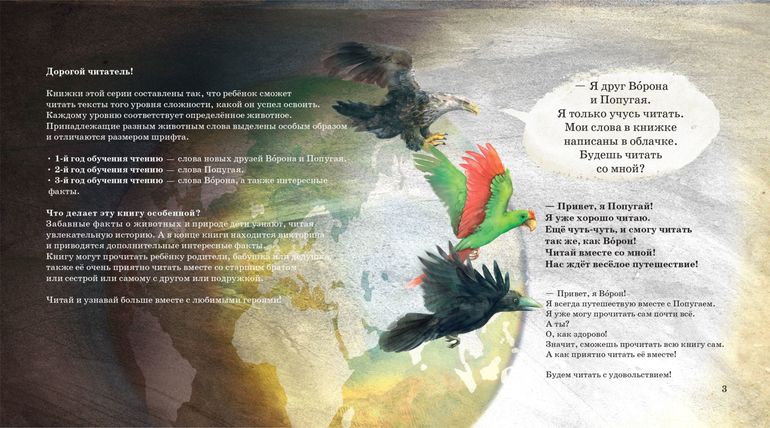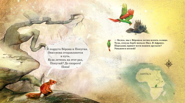 Наших юных читателей ждёт новая встреча с полюбившимися им персонажами умницей Вороном и говоруном Попугаем. На этот раз пернатые друзья путешествуют по Африке. А если быть точнее, они стремятся попасть к истоку Нила, чтобы там перезимовать. В пути им предстоят самые разные приключения и знакомства с необычными животными.