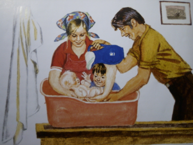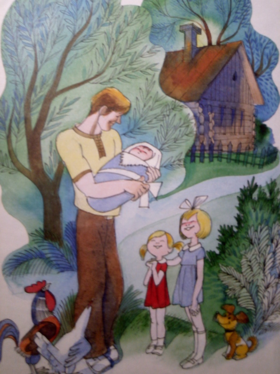 Флешмоб!Здравствуйте! Тема флешмоба очень понравилась, хотя сомневалась: удастся ли мне что-то найти. Почему-то казалось, что младенцев в книгах чаще всего рисуют в виде свертков )) Но, покопавшись в своих книжках, поняла, что это не совсем так )))