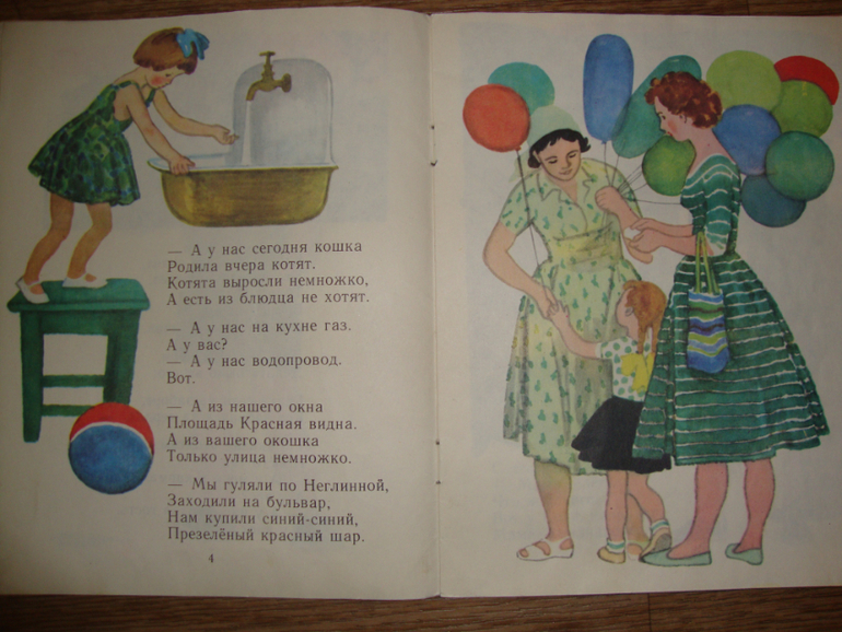 Какие книги у меня ассоциируются? Наверное "А что у вас?" Михалкова. Именно такие иллюстрации были в мое детство. И хоть Красная площади из окон не была видна, но эта картинка была близка тем, что в выходные мы с папой и мамой шли гулять.