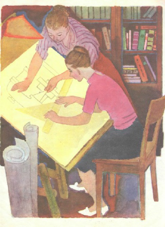 А эта иллюстрация - моя мама). Она работала инженером-конструктором и иногда приносила работу домой.