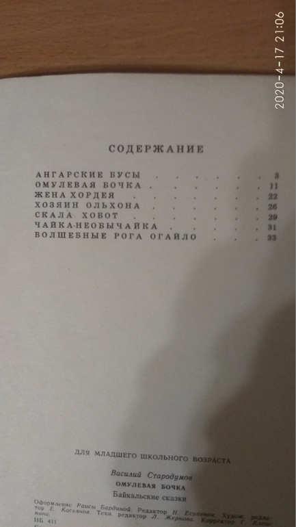 Следующая книга по возрасту. Омулёвая бочка. Байкальские сказки. Василий Стародумов. Книга 1979 года. Хочу купить еще и современные издания Байкальских сказок. Просто покажу фото книги.