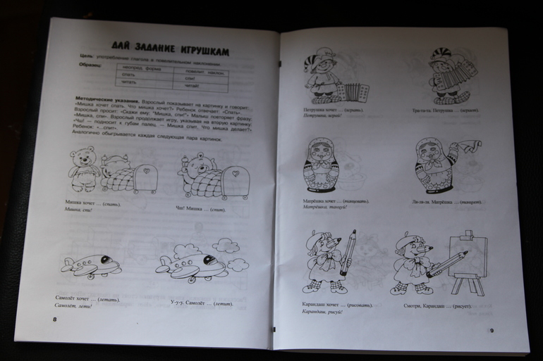 Задания даются и на логику, и на правильность произношения, и на построение распространенных предложений. Я обязательно докуплю эту серию книг, когда материал будет усвоен ребенком.