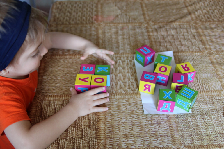 Сейчас сын читает слоги, складывает слоги из кубиков. Любит это. Пробует подставлять третью букву для получения короткого слова.