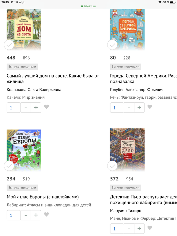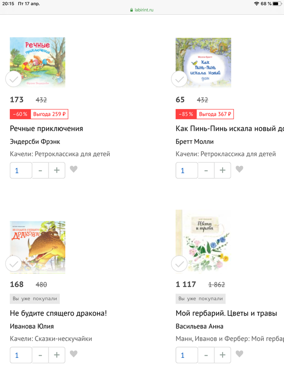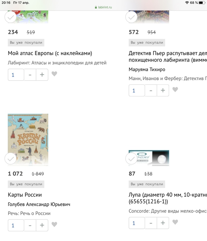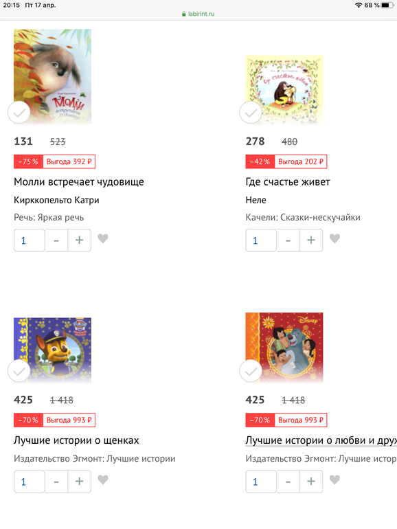 А, поняла, спасибо. Вчера заказывала на Озоне, а в Лабиринте смотрела внутренности книги, заметила, что цена с их 34% скидкой все равно выше Озона.