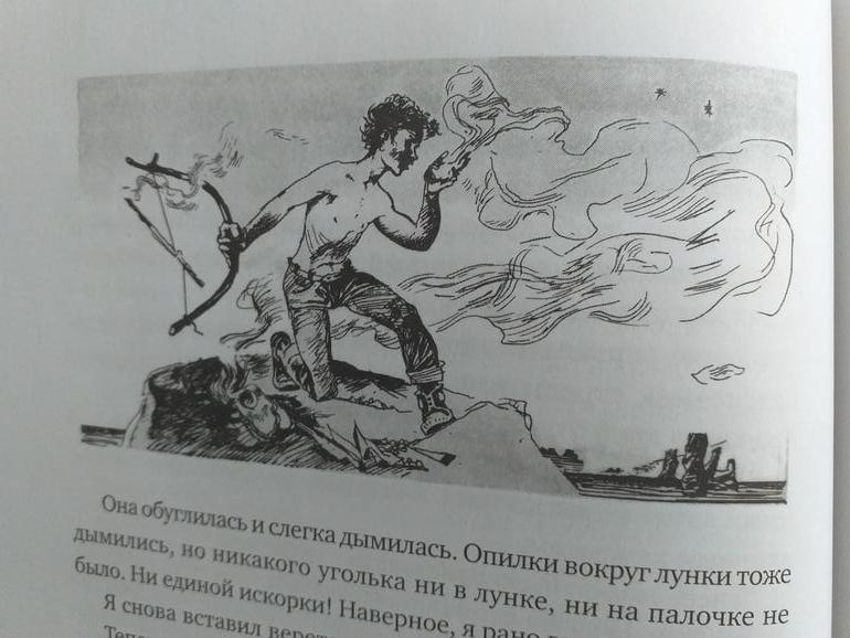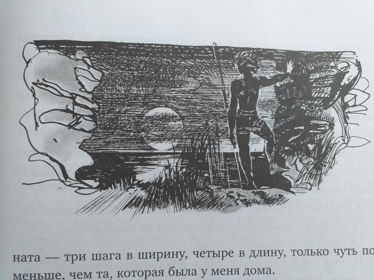 Книга твёрдой матовой обложке, шрифт средний, рисунков не много ( на треть страницы и попадаются на полную страницу, когда Сашка вспоминает жизнь до острова).