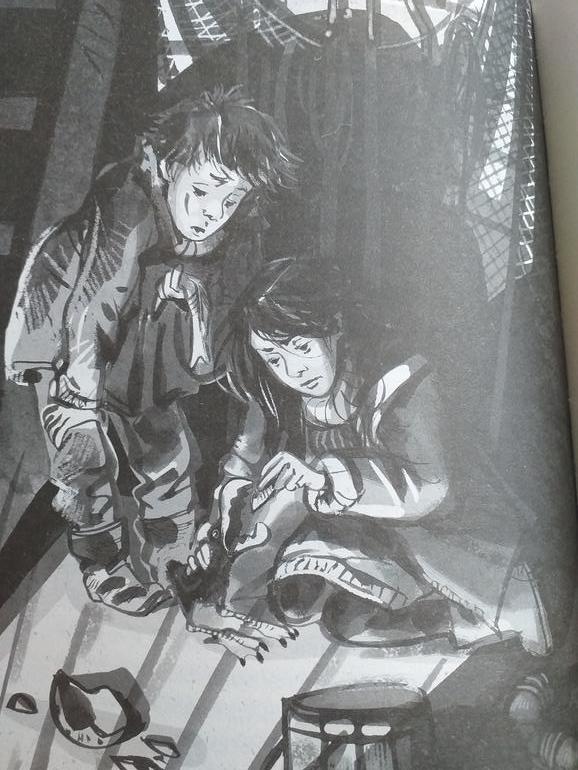 Книга в твёрдой матовой обложке, внутри офсет, крупный шрифт, не большое число иллюстраций и много-много страниц! В отзыве Марины зацепило то, что история напоминает больше не сказку, а реальную повесть со сказочными элементами, и не абсолютно счастливый, но справедливый финал. Все так и есть - подтверждаю! Тут-то сказочного раз-два и обчёлся: ну русалки, ну китовые куры, ну вера в вещий сон главного злодея... все! Очень увлекательная повесть о десятилетней девочке Сири, решивший спасти украденную пиратами младшую сестру. Она отправляется по Ледовому морю одна (дома остаётся отец, которому уже под семьдесят лет и помощь с него невелика), без денег, без плана, с надеждой на удачу и свои силы. И люди на пути попадаются разные - вроде и хорошие с виду, а копнешь - трусливые, алчные, подленькие, равнодушные и жестокие. Но Сири находит Друга - честного и преданного, которого на самом деле гложет мучительное чувство вины. Порой их планы, да и жизни висят на волоске, но автор в последний момент протягивает героям спасительную соломинку, по сценарию жанра, но не совсем заурядными способами. Взрослым читать будет приятно, а детям после 10 должно понравится.