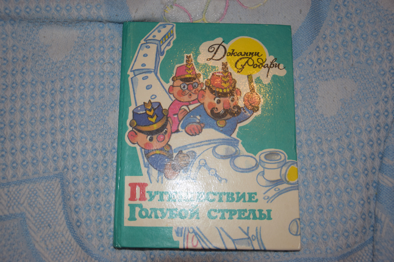 "Путешествие голубой стрелы" Джанни Родари. Это раритет. Книга 1992г. В 1993году мне подарила её подруга на 9-летие. И надпись с поздравлением осталась!Я её прочитала в том же возрасте, что и Дима. В иллюстрациях Владимирского.