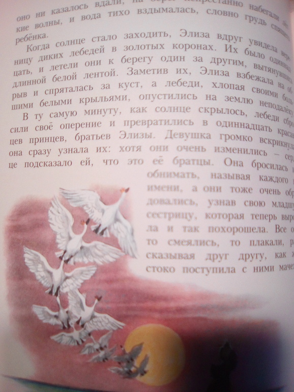 У кого есть эта книга, посмотрите пожалуйста совпадает ли текст с иллюстрациями? Интересует сказка "Дикие лебеди".