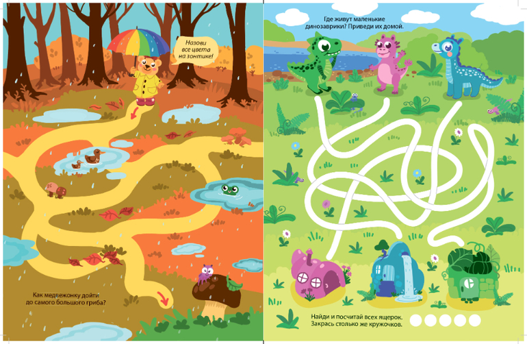- Книга способствует развитию мышления, внимания, логики, воображения и мелкой моторики.