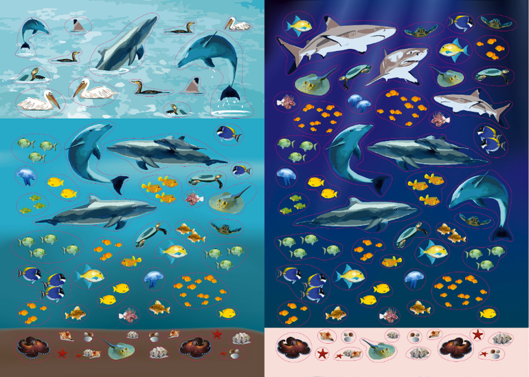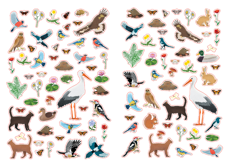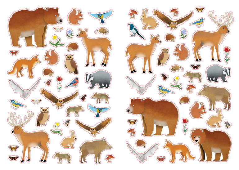 На 13 разворотах с различными природными зонами с помощью более 300 ярких наклеек оживут лес и море, появятся различные животные, насекомые и птицы.