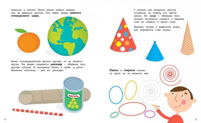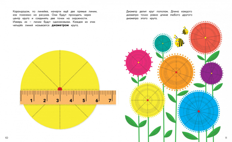 С этой книгой ваш ребёнок познакомится с основными свойствами круга и научится самостоятельно определять длину радиуса, диаметр и площадь круга.